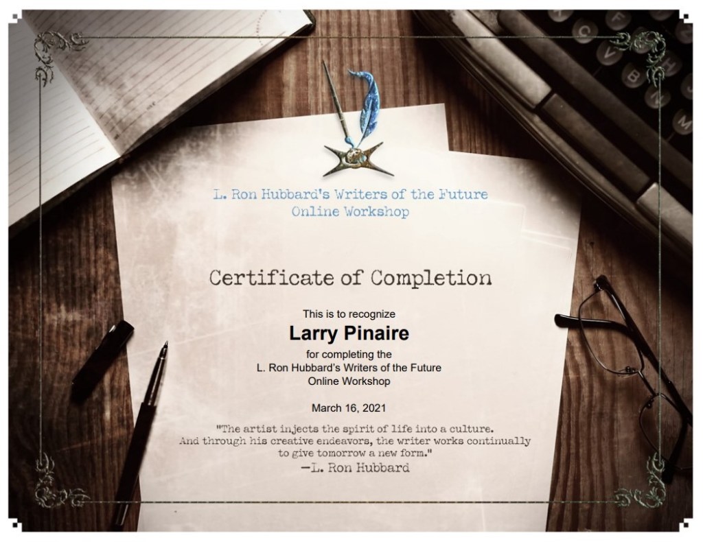 I finally received my certificate for finishing the Writers of the Future Workshop: